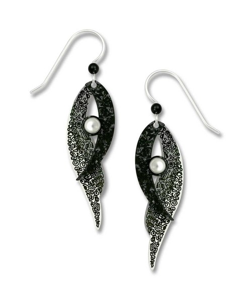 EARRING DROPS BLACK AND SILVER CURVES WITH WHITE ROUND STONE