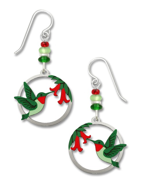 EARRING DROP HUMMINGBIRD IN CIRCLE