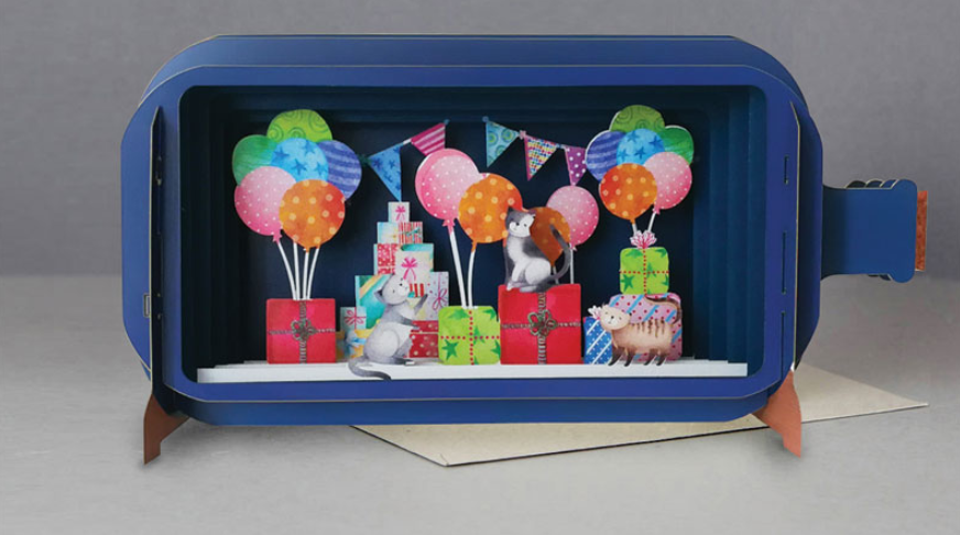 Beautifully engineered with handcrafted perfection. These exquisite cards are crafted with six layers of laser and die cut paper creating a three dimensional diorama. Each card is individually cello wrapped and includes a white envelope.