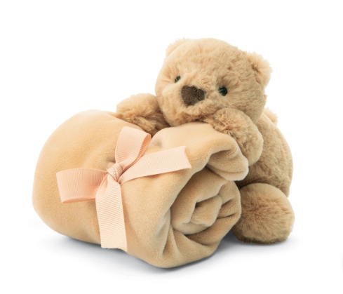 Wrap up warm and hunker down with the Shooshu Bear Soother! This buttercream blankie is amazingly gentle, and so is podgy Bear! Wrapped up in a ribbon, this huggable soother is important for any expedition!