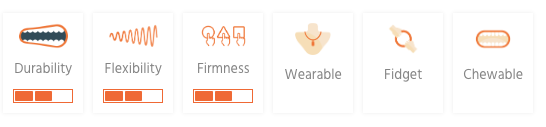 Chewigems are non-toxic sensory chewelry made from food grade silicone. They are lead, latex, BPA, PVC and Phthalate free and come on an adjustable length cord with a breakaway clasp for additional safety (only necklaces will be corded).