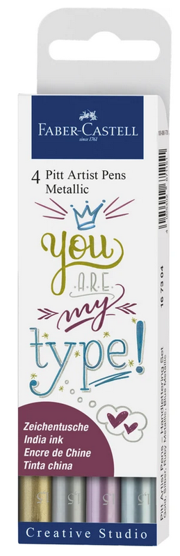This set is ideal for hand lettering and creative card making! Pitt Artist Pens® in metallic colors have a 1.5mm bullet nib. The India inks are odorless, permanent, water-resistant, lightfast, acid-free and pH Neutral. There is no need to pump, prime or shake like other metallic art pens. They have high opacity even on dark paper. The pens are also ideal for sketches, drawings, layouts, fashion design and illustration. Store horizontally when not in use.