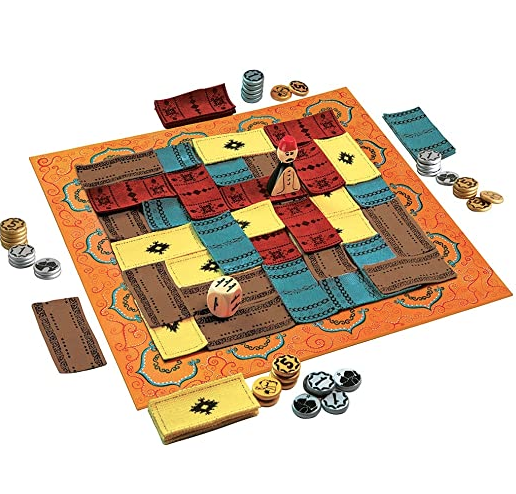 The bazaar is bustling as Assam, the market organizer, inspects the rugs to determine which of them is the best. On a players turn, they turn Assam and roll a die to determine which rug space he moves to. If he lands on an opponent’s rug, you must pay them coins. Then the player places a rug in hopes that Assam lands on it during another player’s turn. A modern classic of area control games, the award-winning Marrakech provides a unique experience in strategy gaming.