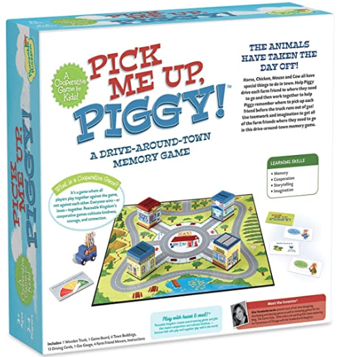 TOYS THAT TEACH: Horse, Chicken, Mouse, and Cow all have special things to do in town. Use teamwork and imagination to help Piggy get all his farm friends where they need to go in this memory game! STORYTELLING: Share a creative and imaginative story for each character that you drop off. The more interesting the story, the more likely you will remember where to pick up your friend later!