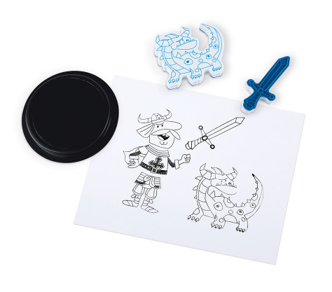 Attention dragon hunters, knights and super warriors in search of adventures! Use these 30 stamps to create a bold universe and invent lovely stories! Develops your child’s fine motor skills and imagination. Foam toy 30 stamps and 1 ink pad