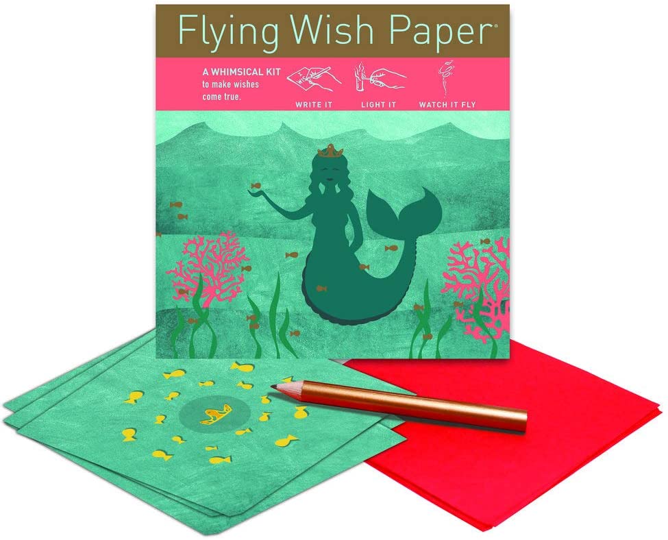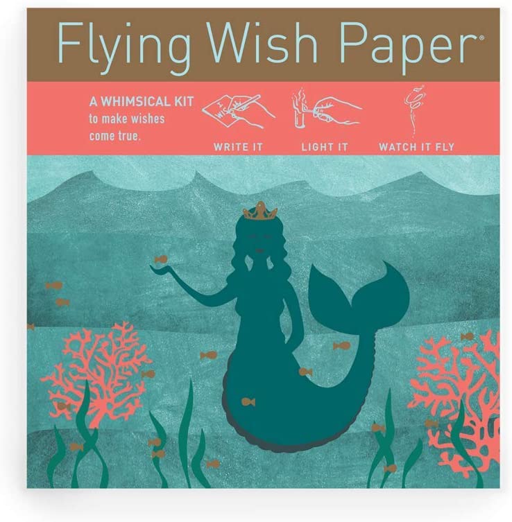 Looking for a fancy wishing item and a whimsical gift card item rolled into one? Flying Wish Paper has what you’re searching for. Their Mermaid Wish Paper Kit is all you need. This set is made of high quality flying wish paper with original graphic design and artwork that is uniquely one of a kind. Each set contains flying wish papers, pencil, wish platforms with design and illustrated instructions. A perfect gifting idea for special occasions, thanksgiving and other events.. Not intended for use of kids or small children. It’s proudly made in the USA