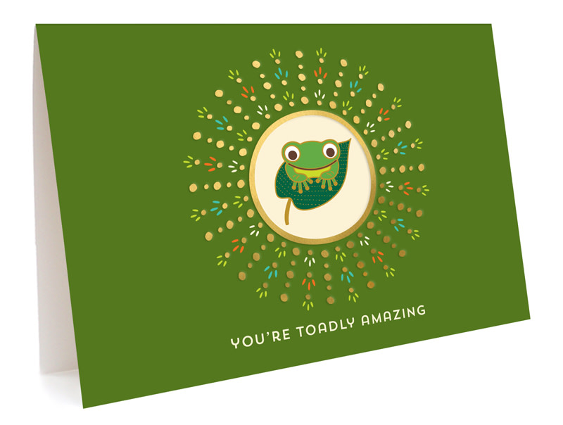 • Folded card embellished with metallic gold foil