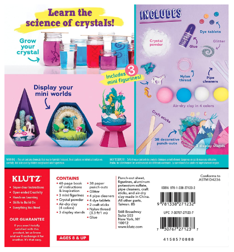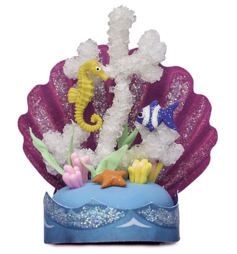 Grow your own magical mini worlds while exploring the science of minerals and crystal formation! Each kit includes materials needed to create 3 different dazzling projects: a Dragon’s cave, a Unicorn’s forest, and a seahorse’s coral reef. You’ll enchant your family and friends with your rainbow creations!