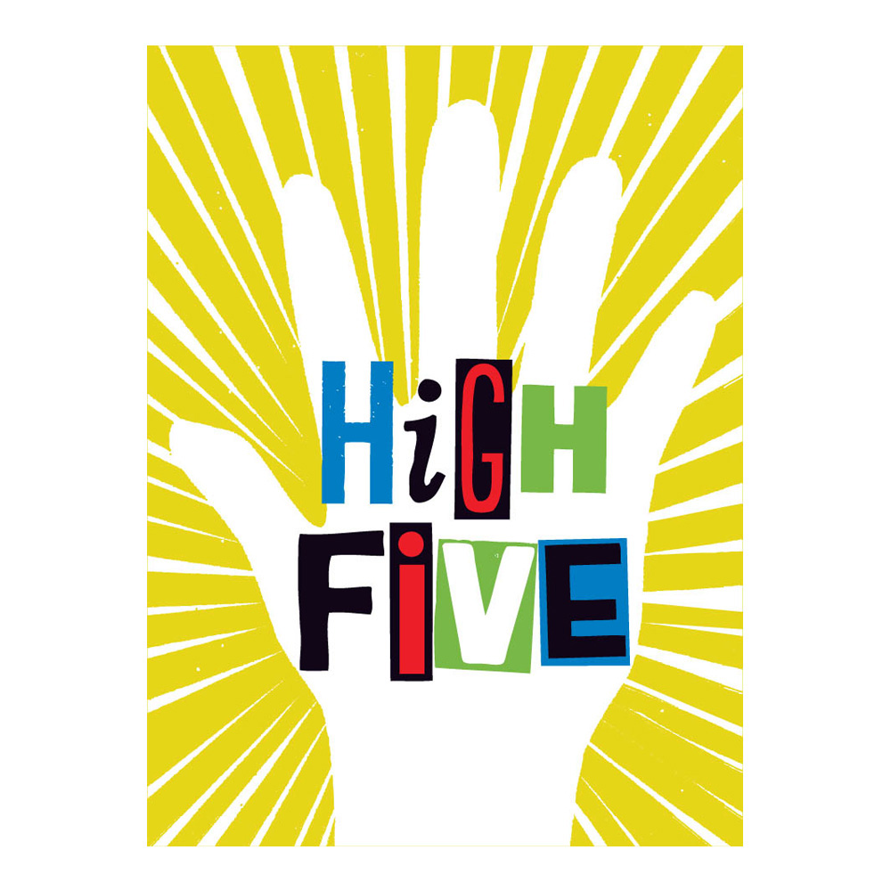 This eye catching card by Great Arrow measures 4.63 by 6.25 inches and features a hand silkscreened ‘High Five’ design that is printed with custom blended colors in Buffalo, NY. The perfect gesture to celebrate family and friends the card reads: “Congrats!”.