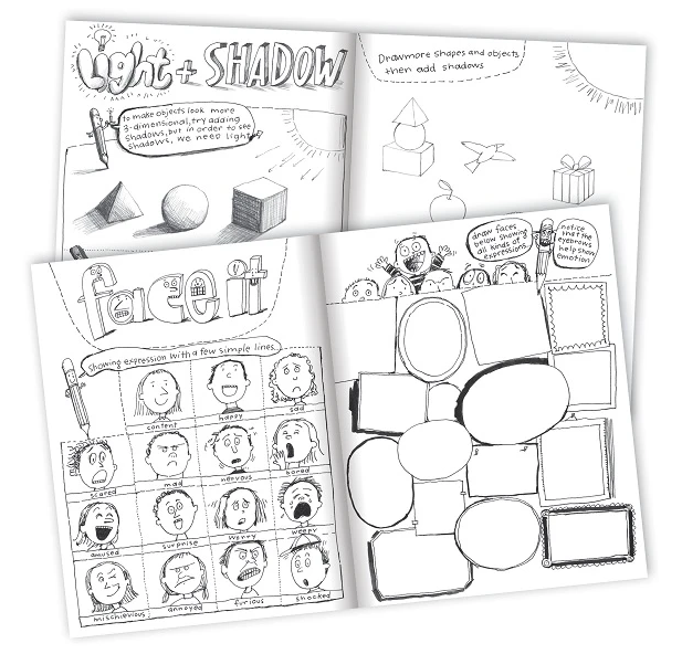 Learn to draw with illustrative artist Melissa Sweet! Experiment with light, form, type, portraits and more! Recommended for ages 5 and older, 32 pages long.