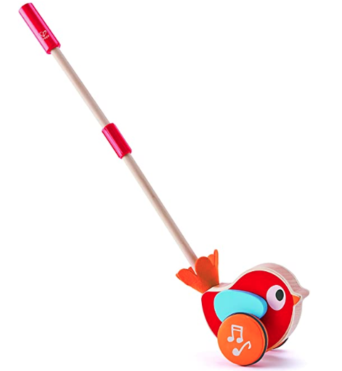 Enjoy house of fun filled entertainment with Hape’s Lilly Musical Push Along toy. Watch the Bird merrily chirps and moves along as little ones learn to walk and balance. This musical push-along toy features Lilly, a push-along bird that sings out the melody of ‘Twinkle Twinkle Little Star’ as your little one meanders. Your child will happily smile while watching the cheerful bird. The rubber-rimmed wheels make little noise and leave few footprints on the wooden floor. The sticks are detachable for easy storage. Hape Lilly Musical Push Along is a great toy for any home or childcare centers. Kids will love the feeling of pushing their adorable bird around. Encourages movement, coordination and balance, this is perfect for toddlers learning to walk. Recommended for kids 12 months and up, this colorful wooden push toy will give hours of fun providing exercise and developing motor skills. Made with a sturdy wooden construction and finished with completely non-toxic, child-friendly paints and finishes. This is a toy your child will love for years to come. The Hape Promise Hape Toys is one of the world’s largest producers of wooden toys. Hape is guided by the philosophy that the future belongs to our children and creates toys that inspire play, learning, and exploration of the world we live in. All of the products meet, and more often, exceed the strictest international standards for quality and safety. Hape Toys represents the next generation of play.