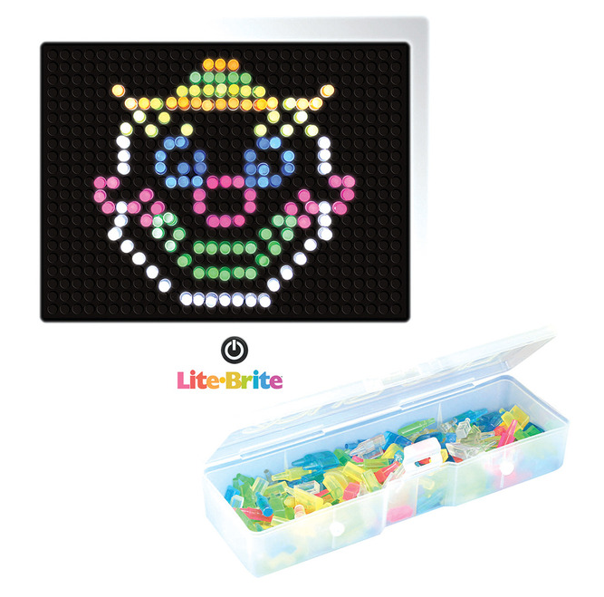 Its art with light! This timeless classic is back with more fun than ever! Includes a removable storage tray and a ton of different shaped pegs. Features 2 reusable templates! Requires 3 AA batteries, not included. Measures 8.75 x 8 x 1.5. Ages 4 & up. WARNING: CHOKING HAZARD Small parts. Not for children under 3 yrs.