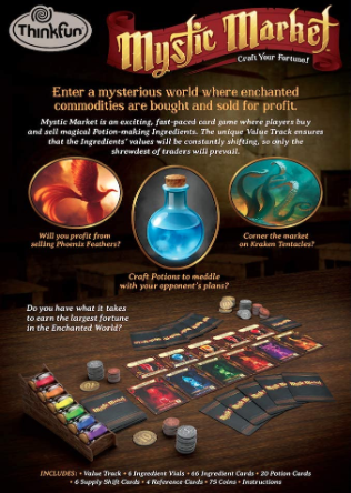 Mystic Market is one of ThinkFun’s most popular strategy card games, and combines the fun of playing a game with deep concepts like theory of value and market economics. It makes a great gift for families or more serious gamers, is made with high quality components, and comes with a very clear and easy to understand instruction manual – you’ll be able to play within minutes of opening the box. Like all of ThinkFun’s games, Mystic Market is built to develop critical thinking skills, and playing will hone your math and strategic thinking skills.