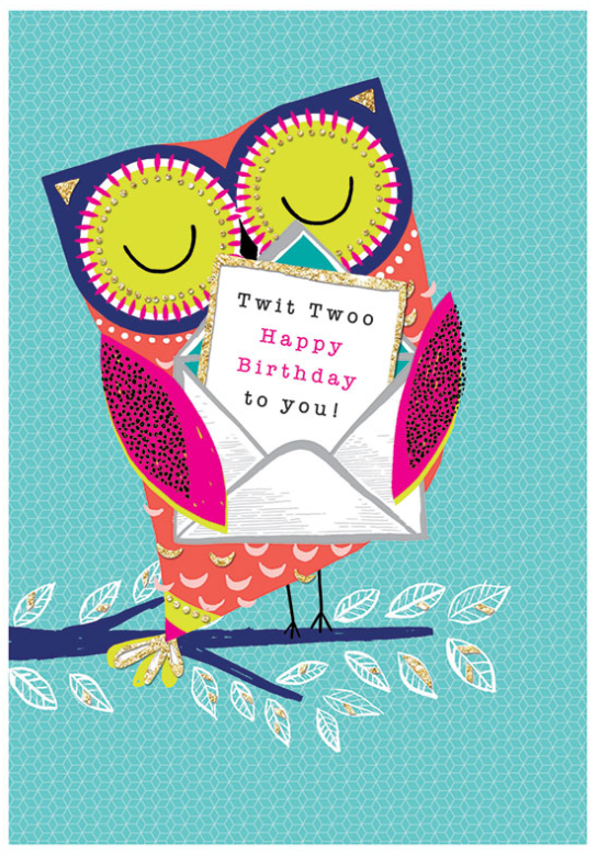 A lovely little card with a tiny little envelope and letter attached. An appealing combination of bold illustrations mixed with a pop of pink neon ink. Brilliant gold flitter detailing. Printed on FSC certified board. Each card is individually cello wrapped and includes a printed envelope.