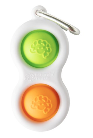 Young or old, this unique little key chain provides endless hours of fidget fun! The frame of Fat Brain’s simpl dimpl is made of strong, high quality plastic – ideal for rattling around in your pocket or purse – and the two colorful buttons are made of 100% silicone. Available in four brilliant color combinations and perfectly sized to fit any set of keys, the simpl dimpl is a simple delight that’s hard to resist.