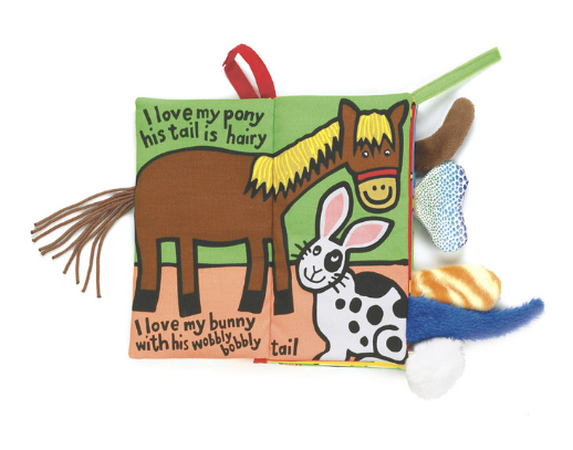 Does a fish have a fluffy white bobtail? Does a parrot have a long furry tail? Dip into our Pet Tails Book to find out the answers! The soft book includes crinkle sounds in each page, so while the guessing’s going on, you can listen to animal clues! Comes with a red fabric carrying loop, so tots can take it anywhere.