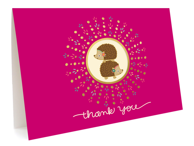 • Folded card embellished with metallic gold foil