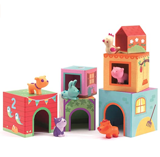 - Build a beautiful farm with this fibre-board blocks and tower set, includes 6 nesting boxes and 6 whimsical farm animals