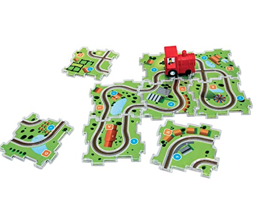 - Once you’ve finished building each puzzle, your wind-up train will speed along the tracks.