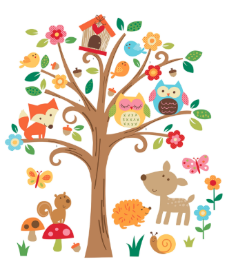 • Includes images of owls, a deer, a hedgehog, and other critters, plus trees, leaves, flowers, and more to complete a fun forest scene for your little one!
