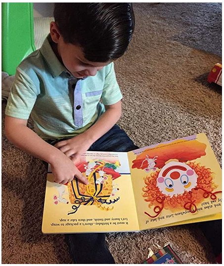 Beautiful, hands-on interactive board book for ages 3 and up. Each page features an adorable illustration with something missing, to be completed with Wikki Stix. Give Piggy a tail. Add wavy black smoke to the top of the bright red train. Excellent for learning colors, and fine motor skills. Ideal for special needs, too, with heavy board pages that are easy to turn, plus Wikki Stix provide assistance with pointing and pressing.