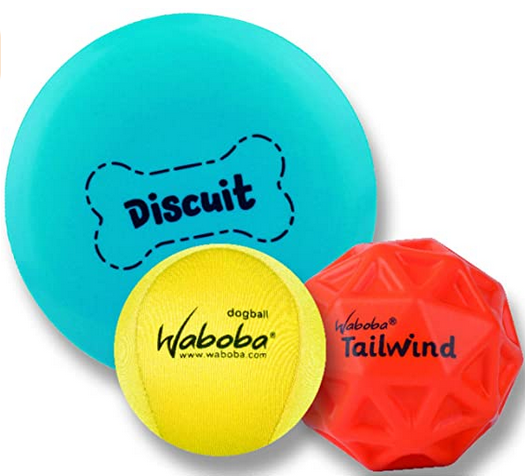 The Waboba woofpack is a 3-in-1 Retrieval toy pack. These 3 tail-wagging Retrieval toys are great for air, land, and water play. Includes waboba’s own tailwind ball, fetch ball and throwing Biscuits